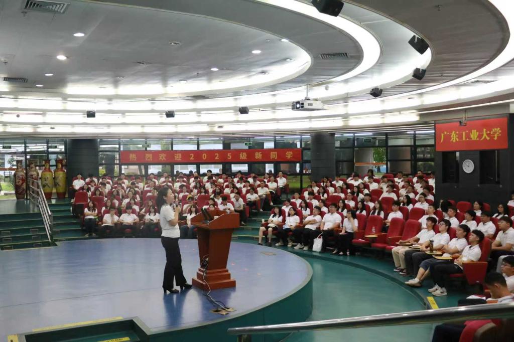 党委副书记武慧娟在科技南楼报告厅为2025级本科新生作校史校情介绍、入党启蒙教育专题讲座,号召同学们以行动书写信仰,在青春赛道上跑出“广工加速度”。