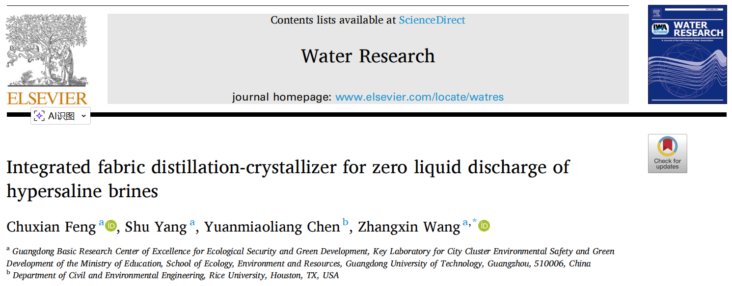 杨志峰院士团队王樟新教授课题组在Water Research上发表题为“Integrated fabric distillation-crystallizer for zero liquid discharge of hypersaline brines”的研究论文。王樟新教授为论文通讯作者,自拍偷拍