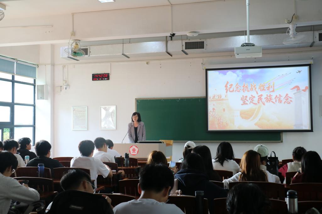12月11日下午,武慧娟以“纪念抗战胜利,坚定民族信念” 为题,结合中国人民抗日战争暨世界反法西斯战争胜利80周年的时代背景,带领同学们重温了14年浴血奋战的壮阔历史。她系统梳理了中国人民14年艰苦卓绝的抗战历程,深刻阐释了中国共产党在全民族团结抗战中的中流砥柱作用,以及伟大抗战精神的丰富内涵,勉励同学们将伟大抗战精神转化为学习动力,把个人理想融入国家生态文明建设大局,以“天下兴亡、匹夫有责” 的担当守护绿水青山,以 “百折不挠、坚忍不拔” 的信念深耕专业领域。